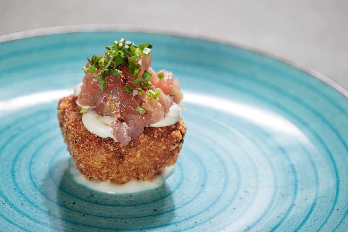 Nel capitolo “dorature e freschezze”, imperdibile l’arancino Saint-Tropea, con cipolla, datterino giallo e tartare di tonno al lime. Entusiasmante il Fiore d’Amalfi, con fiori di zucca ripieni di ricotta di bufala campana Dop, menta fresca, zeste di limone amalfitano, gel di limone allo zenzero e spolverata di Parmigiano Reggiano 36 mesi.