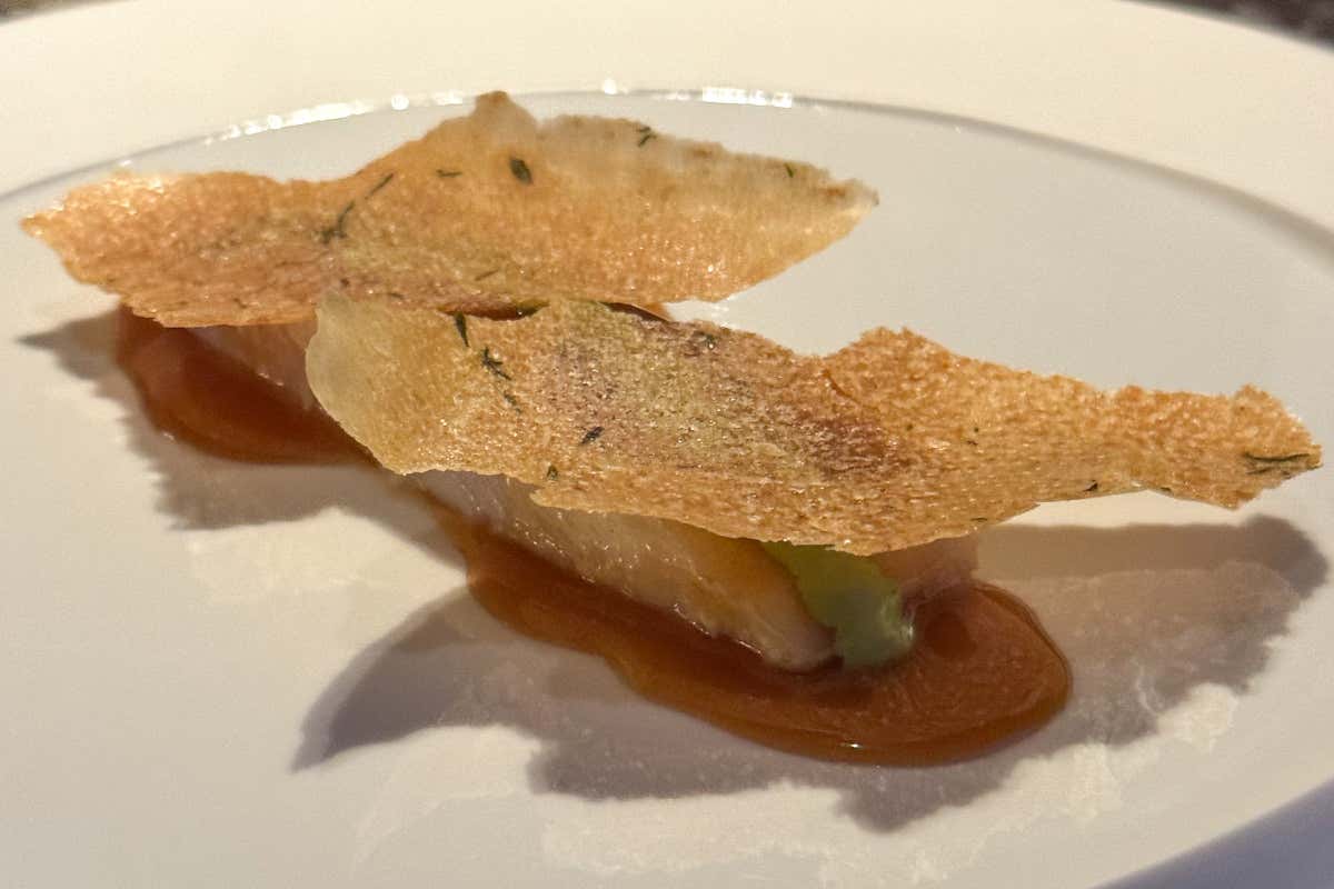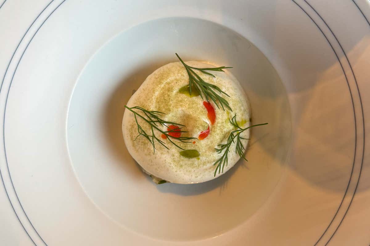 In questa linea convergono concretezza, leggerezza e essenzialità. Sono le tre parole con cui Lenzi descrive la propria cucina. «Per me ogni piatto, che abbia due, tre, quattro o cinque elementi, deve essere capace di raccontare questo». L’attenzione non è sulla quantità, ma sulla coerenza. Gli ingredienti sono pochi, ma il messaggio dev’essere chiaro.