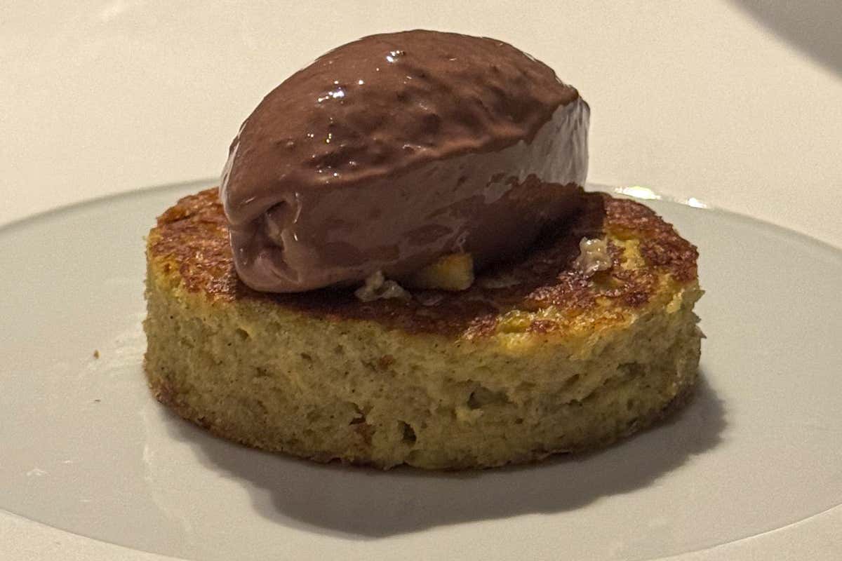 Raffaele Lenzi è nipote di una pasticciera classica napoletana. Il suo primo contatto con il mondo della cucina non è avvenuto dietro una linea, ma tra burro, zucchero e sac à poche. «Ho iniziato prima in pasticceria, poi in cucina», dice. Eppure, da quell’origine dolce ha tratto una strada molto diversa. «I nostri dessert hanno un bassissimo contenuto di zuccheri, con grassi equilibrati». L’equilibrio diventa una forma di lucidità, un modo per evitare l’eccesso, senza rinunciare alla precisione. Non si tratta di fare meno, ma di fare meglio. Anche la piccola pasticceria, più tradizionale, segue questa linea: proporzionata, attenta, calibrata sulla chiusura.