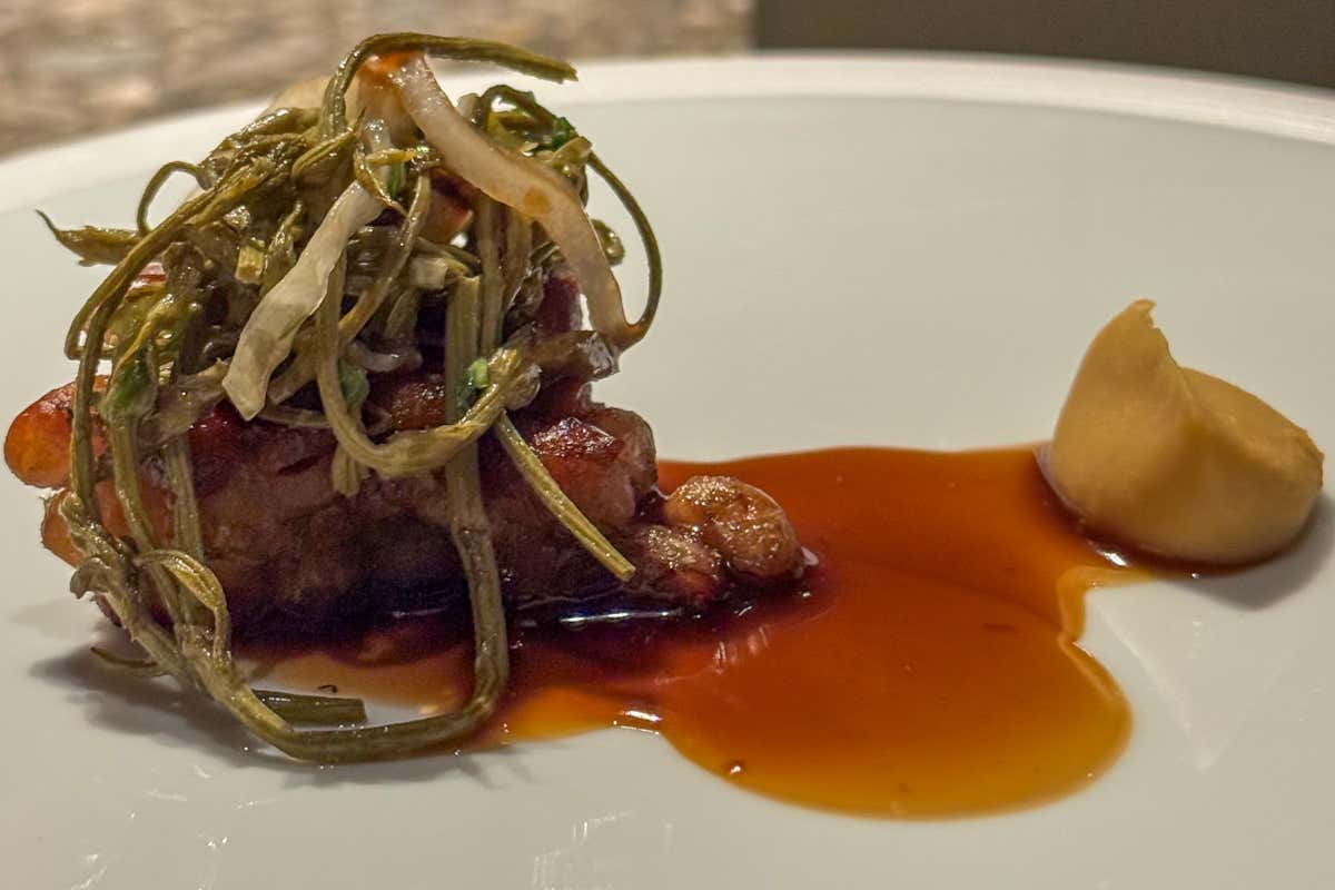 La posizione, la struttura, il contesto architettonico firmato da Patricia Urquiola, la storia della famiglia Contreras che guida l’hotel, tutto concorre a costruire un ambiente in cui la cucina deve stare al passo del luogo. «Scherzo spesso dicendo che il mio primo concorrente è la signora Urquiola. Il livello della struttura obbliga a non distogliere mai l’attenzione. L’ambiente è un riferimento costante, tiene viva la tensione nostra, del team, del progetto».