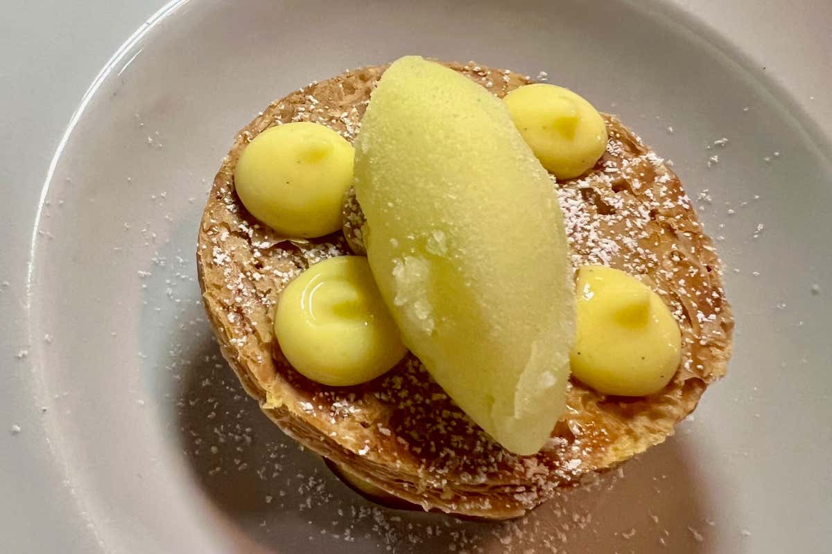 - Tra i dolci, sempre fatti in casa da una giovane, talentuosa pasticcera, Alessandra Gravarelli, ci sono la Luna di miele (pan di Spagna al miele, crema di cheese cake, composta di nespole e gelato alla birra), la dolce fuga (Cremoso al sesamo, mousse al cioccolato, crumble di mandorle e gel al mandarino) o un'intrigante e personale interpretazione dei strudel in cui le mele sono trasformate in gelato.