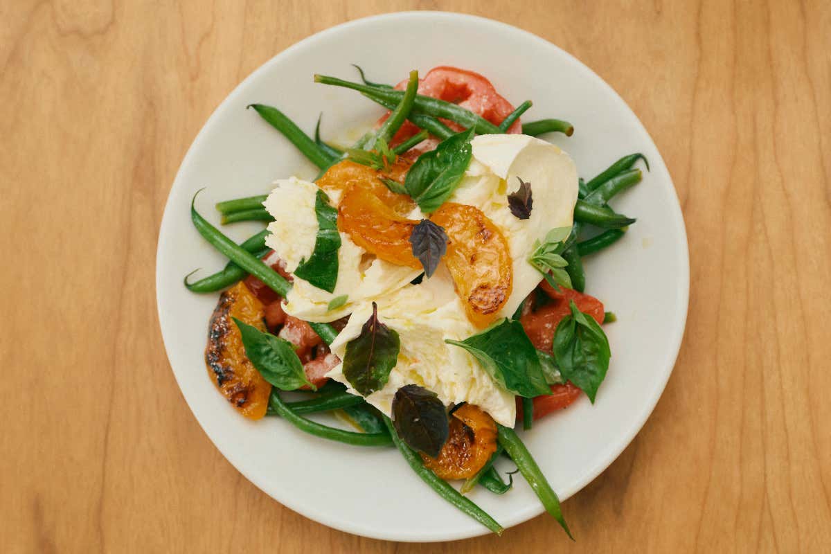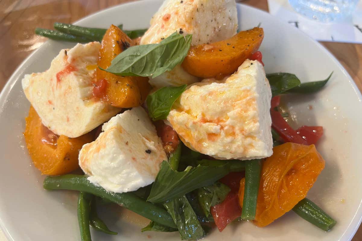 ABC: mozzarella di bufala Borgoluce con albicocca arrosto, pomodoro e fagiolini