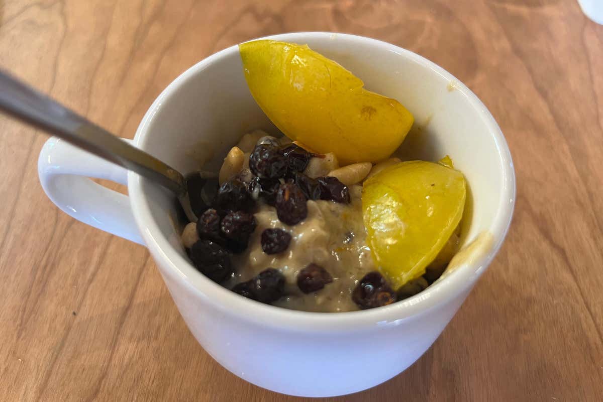 Cinque i piatti proposti in degustazione. Come entrée, una pizzetta con lievito madre, farina del Mulino Sobrino (che per lo chef Martin è «uno dei migliori in Italia»), pomodoro, origano e olio extravergine d'oliva. Un piatto semplice, ma gustoso. A seguire, una squisita mozzarella di bufala Borgoluce con albicocca arrosto, pomodoro e fagiolini.
