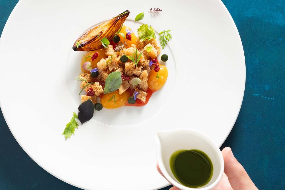 Rilevante è certamente il primo menu completamente vegetariano: «Naturalia non è stato imposto da una moda, ma da un senso di responsabilità. Hai ettari di terra, un orto rigoglioso, persone che ti chiedono: “Cosa vuoi che piantiamo per te?”. Ho imparato moltissimo: quanto tempo serve per far crescere un pomodoro, quali ortaggi non possono stare vicini, che sapori si influenzano. È stato un percorso educativo». Il menu Naturalia, in cinque portate, cambia con l’estate seguendo la maturazione dei prodotti. Anche gli altri due menu degustazione - Incontri e Incontri Condensed - si evolvono con attenzione alla stagionalità e alla riduzione degli sprechi.