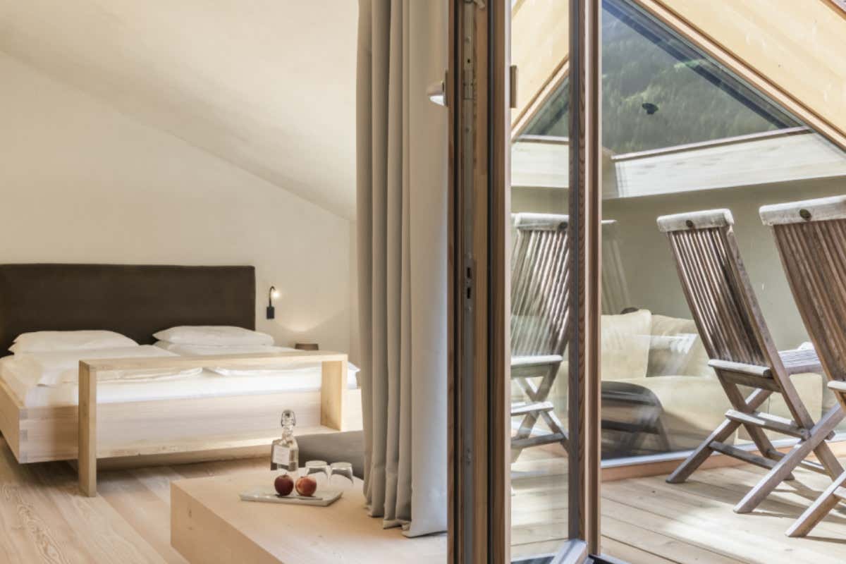 Il riposo diventa un rito rigenerante: letti ecologici in seta, materassi pregiati, nicchie soleggiate per il relax, ambienti privi di barriere architettoniche e adatti anche a ospiti allergici. Qui il comfort si misura in silenzio, luce naturale e armonia. Ogni dettaglio è calibrato per favorire il sonno profondo e la rigenerazione psico-fisica, avvolti dal profumo del legno e dalla purezza dell'aria alpina. Al risveglio, ci si lascia coccolare da una prima colazione gourmet, ricca di prodotti regionali fatti in casa. Un preludio ideale per la giornata, che si apre con i sapori genuini della tradizione altoatesina.