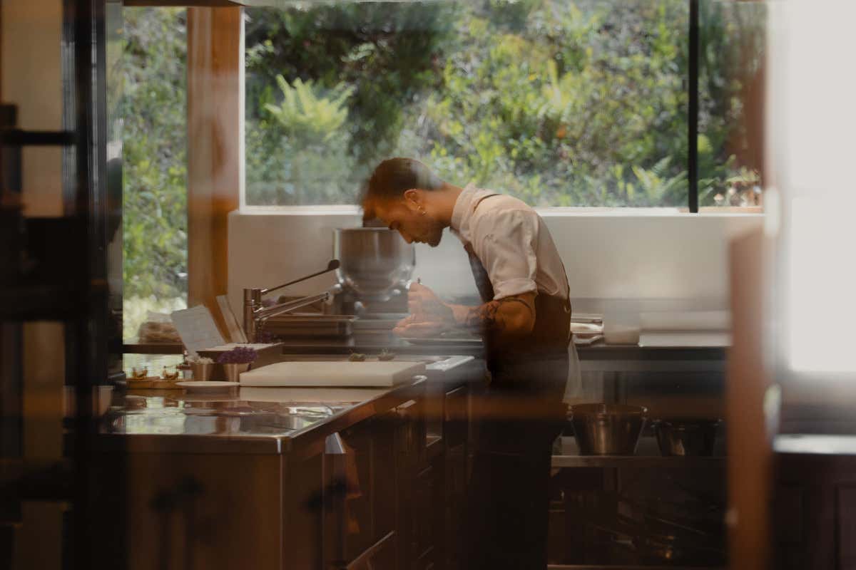 Lo chef all'opera in cucina