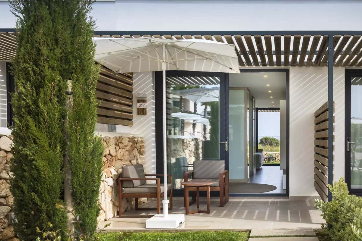 Linee essenziali, materiali naturali e tonalità ispirate alla terra minorchina creano un'atmosfera accogliente, contemporanea e profondamente rispettosa dell'ambiente. Nulla è lasciato al caso: ogni elemento d'arredo, ogni tessuto, ogni finitura richiama la filosofia dell'hotel, basata su una sostenibilità autentica e non esibita. Tra le 128 camere, spiccano 45 esclusive sistemazioni con accesso diretto a piscine semi-private: piccoli paradisi privati dove il tempo rallenta e lo sguardo si perde tra l'acqua e il cielo. Queste camere rappresentano la quintessenza del comfort disinvolto, ideali per chi cerca privacy, intimità e un contatto continuo con la natura, senza rinunciare ai servizi di un resort di alto livello.