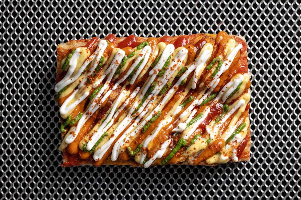 Sei le pizze e le focacce declinate tra antipasto e dolce, accompagnate da ottimi vini e dai drink di una lista firmata dal bar manager Angelo Di Giorgi. Erano "So quadro ajo e oio" (stracciatella, broccoli, alici di Anzio), "Visione Margherita" (la superclassica secondo Alessandro Santilli), "Zuccona" (variazione di zucca sormontata da puntarelle romane), "Cacao & Coda" (vaccinara scomposta con focaccia al cacao, coda e spuma di Caciocchiato di Formia), una croccante "Baciata" (ricotta, prosciutto di Bassiano affumicato e limone candito) e infine, intrigante sfida tra il dolce e il salato, la "Millefoglie di pizza cavolfiore e nocciole" (sfoglie di focaccia, declinazione di cavolfiore alla vaniglia e nocciole caramellate).