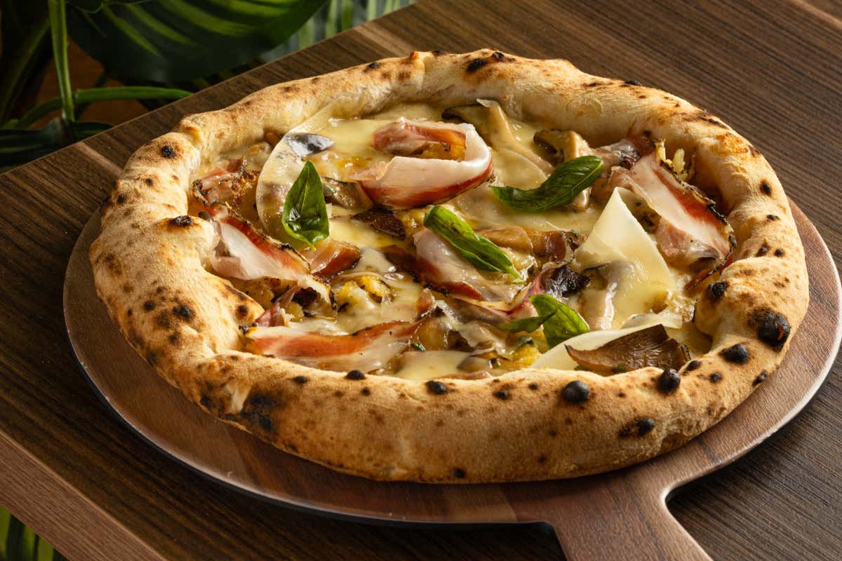 Veniamo alle pizze. Alla memoria ricorrendo, ancor prima che agli appunti, raccontiamo il gustoso pranzo di un giorno feriale della scorsa settimana: cielo terso, temperatura primaverile, imponente e bello, proprio bello, il vicino Palazzo Reale. Si comincia con Frittatina 2.0. La pasta è la pasta mista (e però ci piace dire “pasta mischiata”) del pastificio Di Martino Pasta di Gragnano Igp. Concorrono ad abbracciarla, voluttuoso l’abbraccio, lo speck Alto Adige Igp, Besciamella, Provola affumicata in paglia, Fonduta di Grana Padano Dop, Patata del Fucino Igp, Beurre di Isigny Dop e latte nobile di Castelpagano (Bn), presidio Slow Food. Occhio: il Beurre di Isigny Dop è l’unico vero burro di Normandia. Quanti e quanti, cruccia ammetterlo, dichiarano di usare il burro di Normandia ed invece non è vero. Ma è millanteria in buona fede, ne siamo convinti.