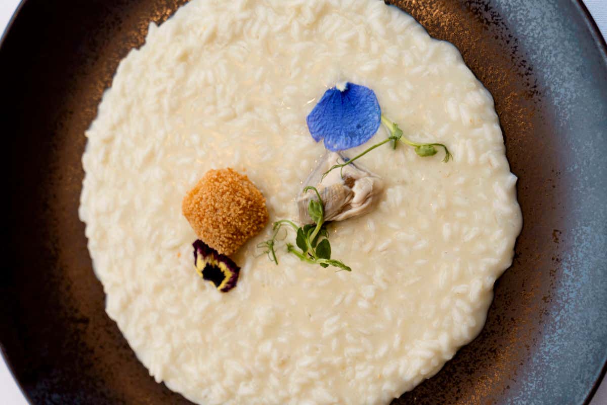 Come detto, a queste proposte si abbinano tre piatti fuori menu pensati dallo chef Marco Fossati: un ponte tra mare e montagna. Si parte con la tartare di tonno con lime e briciole di pane, accompagnata da crauto viola e Bozner sauce, tipica del Trentino a base di uovo sodo ed erba cipollina, che dona cremosità alla delicatezza del crudo. Cuore del percorso è il Risotto A’R Milano-Cortina, sintesi perfetta tra le due anime dei Giochi: il riso, bagnato con un infuso al pino mugo per richiamare i sentori resinosi del bosco, viene mantecato con burro di malga ed è abbinato a un’ostrica che sprigiona un’improvvisa sferzata marina, mentre il midollo di vitello rende omaggio alla tradizione meneghina.