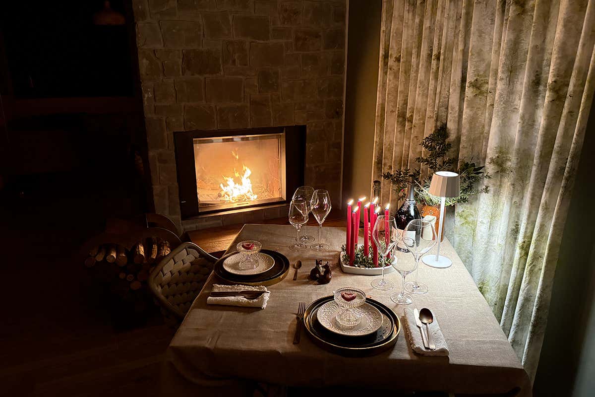 A partire dalle 19.30, la serata prosegue nella sala caminetto, allestita a lume di candela, con cameriere dedicato e menu degustazione gourmet pensato per accompagnare l’atmosfera e rendere la cena un momento memorabile.