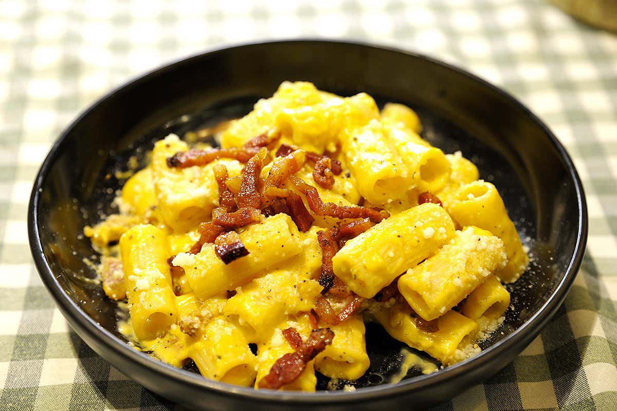 «In quell’altro la musica è importante, si fanno serate ed eventi, e quindi ci vai se vuoi divertirti a 360 gradi. Qui “Da Davidino”, invece, è la cucina tipica a dominare, tutto il resto viene dopo. Avevo bisogno di un luogo dove riportare in vita i piatti dell’adolescenza, quelli della trattoria romana dove andavo a mangiare con i miei, e vado a recuperare anche quelle cose che oggi vengono snobbate perché fuori moda, ossia le pennette alla vodka, i tortellini panna e prosciutto, le farfalle al salmone: è la cucina popolare, riporta alla mente il pranzo in famiglia, quello che puoi organizzare anche se non hai il diploma di chef appeso al muro».