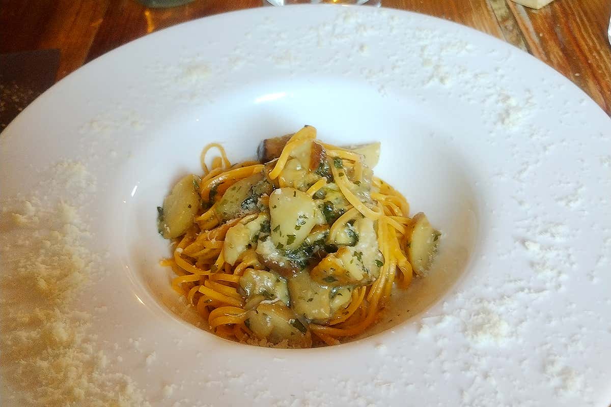 La cucina di Raffa propone un menu che cambia periodicamente, alternando piatti classici della tradizione montana a proposte più raffinate. Non mancano grandi comfort food alpini come la polenta, la zuppa di legumi e il tagliere montano. Accanto a questi, compaiono piatti più ricercati come l’uovo al padellino con pancetta e brie o i tagliolini ai funghi, vero protagonista del nostro pranzo. Un piatto apparentemente semplice - pasta fresca, funghi, aglio, prezzemolo e una sfumatura di vino bianco - ma realizzato con una precisione sorprendente. I funghi sono cotti alla perfezione, morbidi e succosi, capaci di sprigionare aromi intensi senza perdere delicatezza. Il condimento è perfettamente equilibrato: un piatto che, per pulizia tecnica e profondità di sapore, potrebbe tranquillamente figurare nel menu di un ristorante di fascia alta di città.