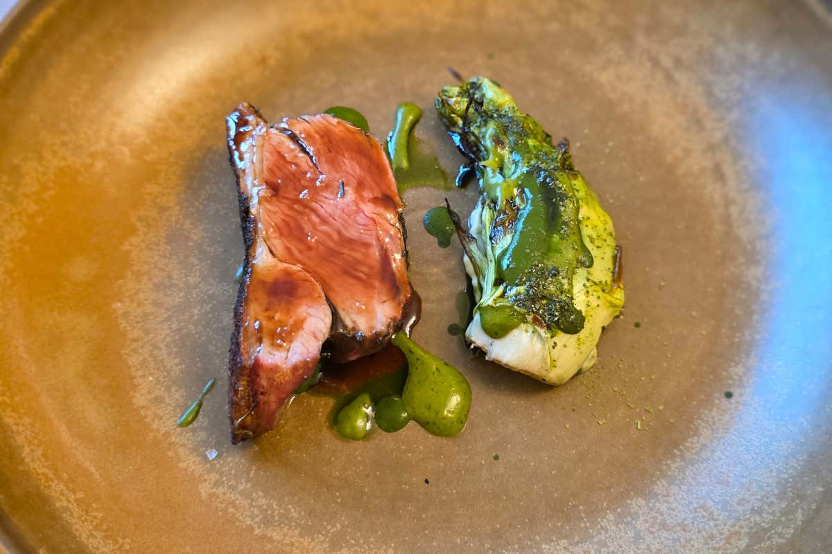 Una formazione molto solida, la sua, che gli consente di muoversi agilmente tra le pieghe del gusto, in modo naturale, senza far pesare sui piatti i dettagli tecnici, presenti eccome, ma a dare struttura e coerenza. «Da subito abbiamo voluto raccontare dove siamo. Le materie prime sono tutte di qui: agnello, pecora, erbe, è tutto assolutamente riconoscibile».