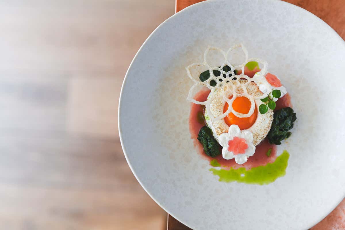 Il cuore gastronomico del resort è il ristorante Artifex, un progetto gourmet che punta su esclusività e ricerca. Solo quattro tavoli per un massimo di sedici coperti, in uno spazio raccolto e luminoso dove ogni dettaglio è pensato per valorizzare l’esperienza, aperto anche agli ospiti esterni tutte le sere dal giovedì al lunedì, dalle 19 alle 22. Qui lo chef Moccia propone due percorsi degustazione da sei portate, “Altitude” e “Giro del Mondo”, accanto a un menu a sorpresa da otto portate, costruito come un vero e proprio racconto gastronomico.