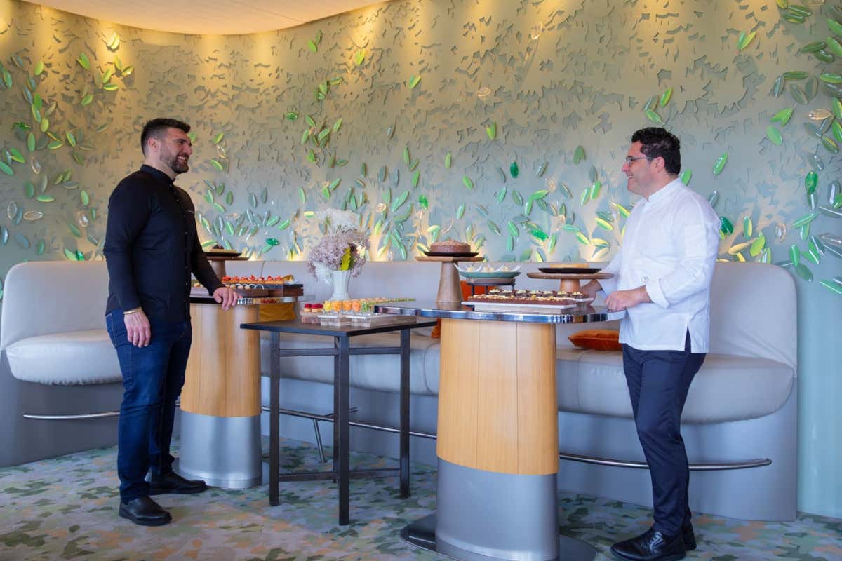 A Tommaso Foglia è toccata invece la conclusione dolce: la leggerissima Delizia al limone con cioccolato bianco, la torta al basilico, limone e pistacchio e quella al caffè e agrumi, oltre a vari deliziosi bocconi mignon come le frolle con fragole e scrigni di cioccolato e frutta secca. Tutti sapori intensi che riflettono la sua origine campana. La sua idea fondante è la massima leggerezza, moderando grassi e zuccheri. «La pasticceria - dice - è passata attraverso varie fasi ed è stata anche demonizzata. Ma a noi della nuova generazione di pastry chef spetta il compito di renderla contemporanea e fare in modo che venga consumata ogni giorno, come valore nutrizionale ed emozionale». Imminente l’apertura della sua prima pasticceria a Nola.