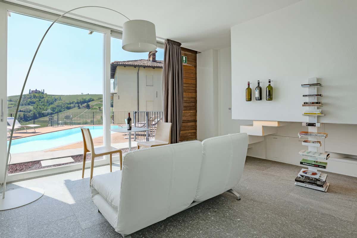 L’ospitalità è a Palás Cerequio, a La Morra (Cn), ideale per un soggiorno immersivo tra i crus di Barolo. Il relais di charme ha undici suite, ognuna dedicata a un cru del Barolo: quattro del passato (nella palazzina del ’700 di stile barocco) e sette del futuro, con grandi vetrate e materiali naturali.