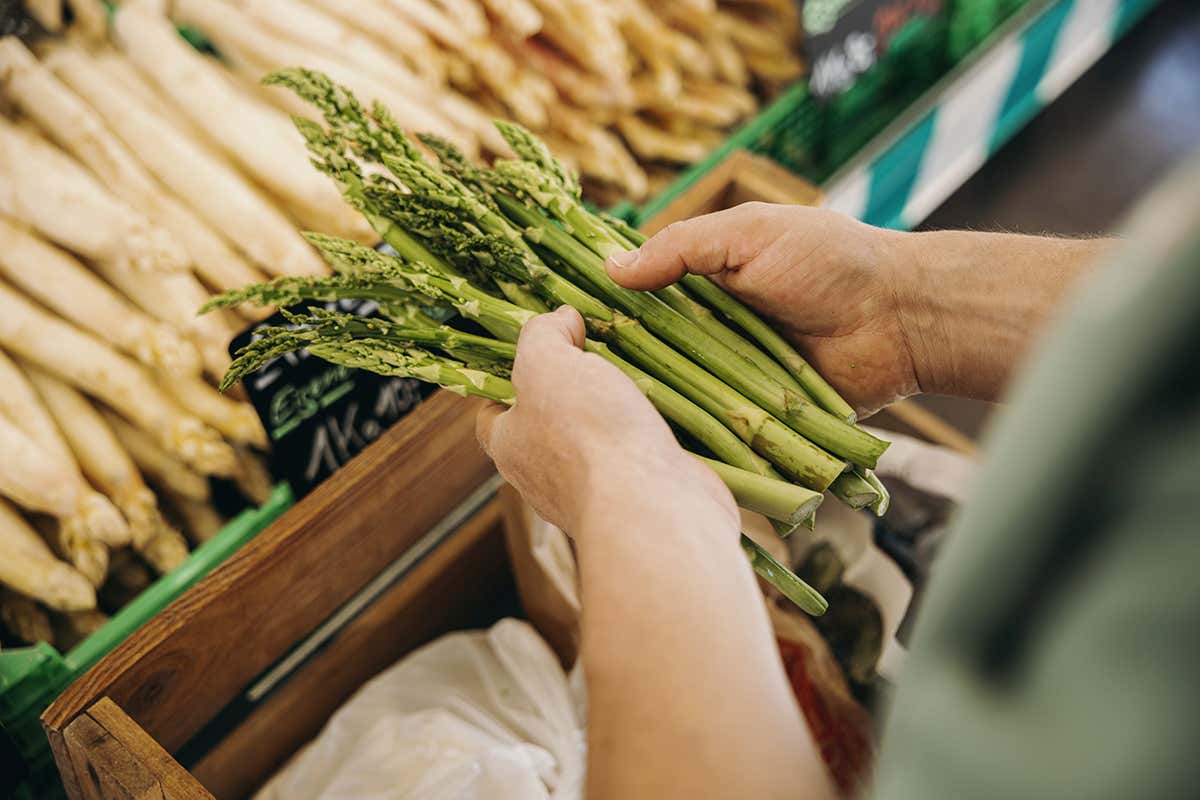 La raccolta degli asparagi richiede precisione e manualità, un gesto antico della tradizione agricola locale