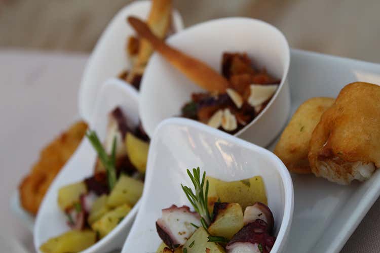 I bocconcini di panelle, le verdurine, la focaccia col tonno, i ravioli ripieni di tenerumi, con gamberi e burrata, gli involtini di melanzane, i panini con gamberi e zucchine, gli ziti mezzani con cozze e mandorle, polpo e patate, caponata e baccalà pastellato; un susseguirsi di sapori tipici della tradizione culinaria siciliana, riproposti in chiave moderna, secondo l’estro dello chef.