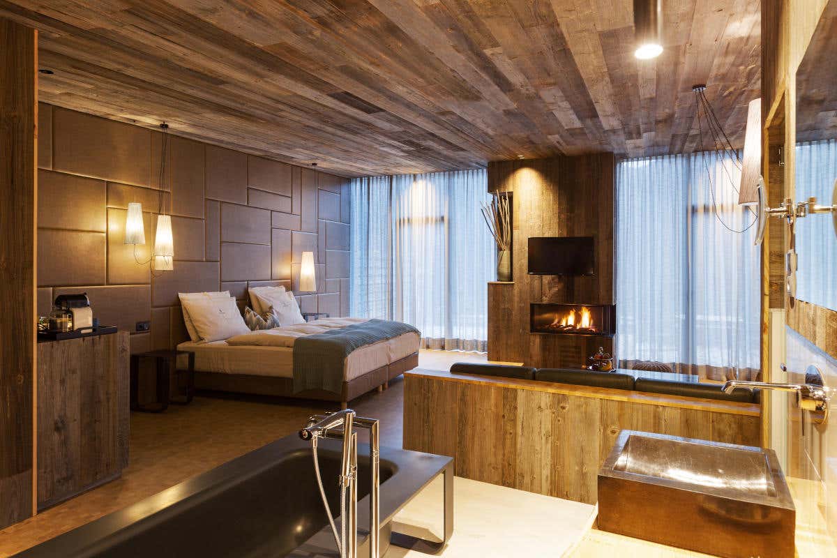 La suite Regno del Cirmolo è una pura immersione nel benessere di tradizione alpina: gli interni in caratteristico legno di cirmolo diffondono un gradevole e benefico profumo nella stanza, che comprende anche sauna al fieno e all’esterno vasca salina circolare. Caratteristiche della suite Regno del Fanes sono invece ampio bagno turco e due originali vasche da bagno ricavate ciascuna da un unico tronco di castagno, per fare un bagno al siero di latte, di vinaccioli o di oli aromatici all’interno di una autentica opere d’arte. Interamente dedicata al trattamento di punta è invece la stanza Caveau, dal design raffinato sui colori nero e oro, che richiama i prodotti dell’omonima linea cosmetica, naturali rimpolpanti e anti-aging, una vera cura per la pelle. Una linea di creme e sieri di altissima qualità che il Fanes utilizza in esclusiva con pochi altri hotel di lusso in Europa.