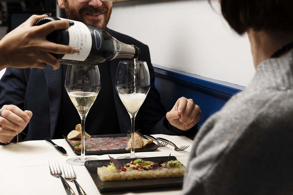 Al tempo del dessert la scelta diventa davvero problematica perché entra in scena un pastry chef, Antonio Pianese, con proposte irresistibili: il Tortino caldo con cuore di cioccolato bianco, noci dolci e salate, crema leggera rum e castagne; la Tarte 63, sablè alla vaniglia con crema cheesecake e frutta in osmosi; il Savarin al limoncello, crema al limone e mandorle sabbiate e la Gianduia Che Passione: bavarese alla nocciola e al cioccolato fondente 70%, cuore vivo al cacao speziato e salsa al passion fruit. Non poteva mancare il Tiramisù che qui viene rispettato nella sua prima formula: mascarpone, savoiardi e caffè Arabica. La carta dei vini porta il segno della competenza, con ricarichi accettabili.