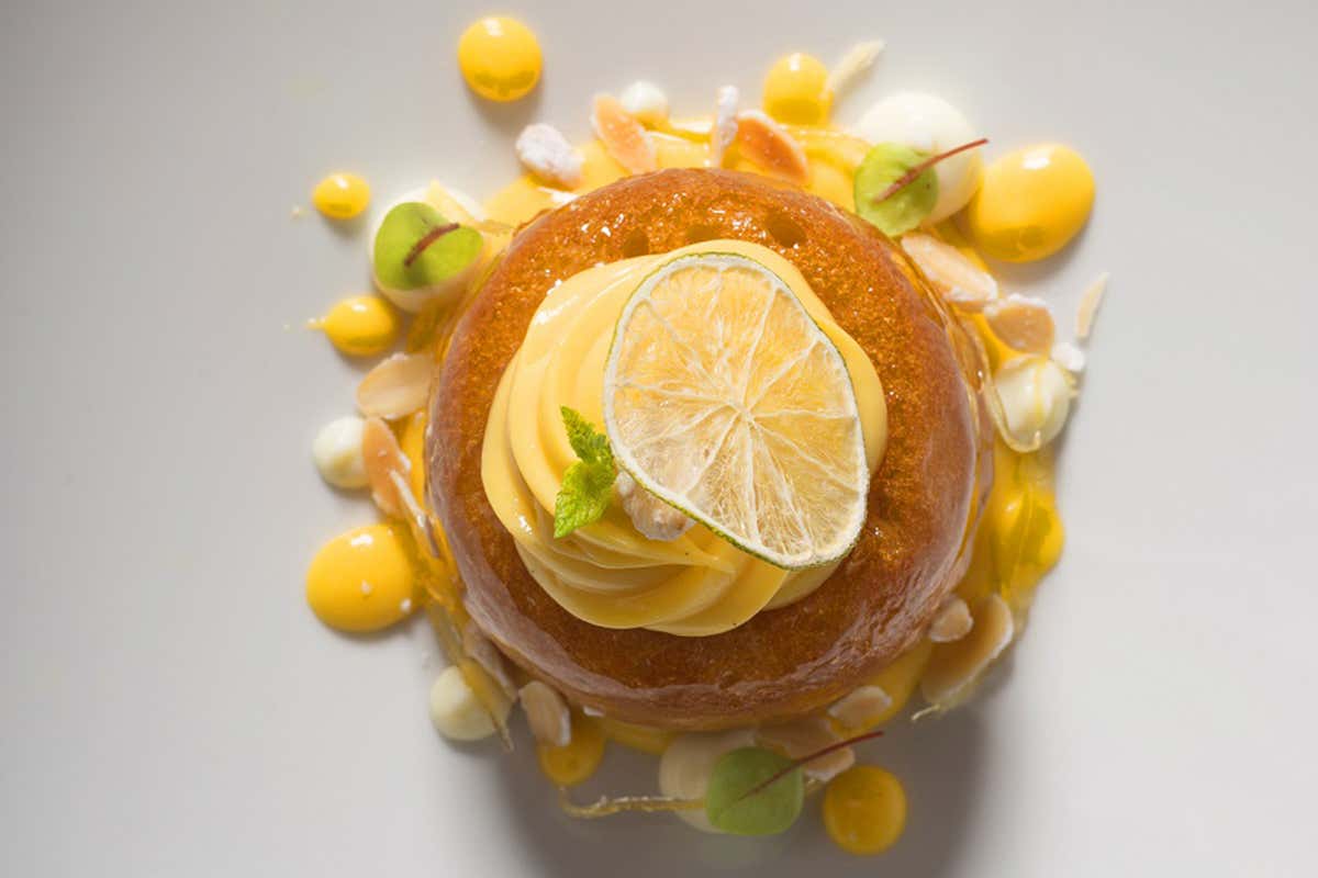 Savarin al limoncello, crema al limone e mandorle sabbiate