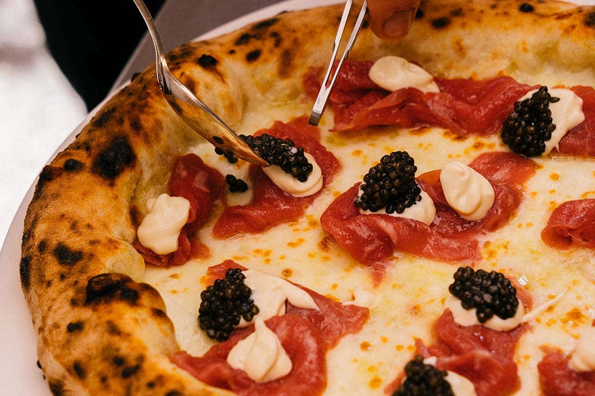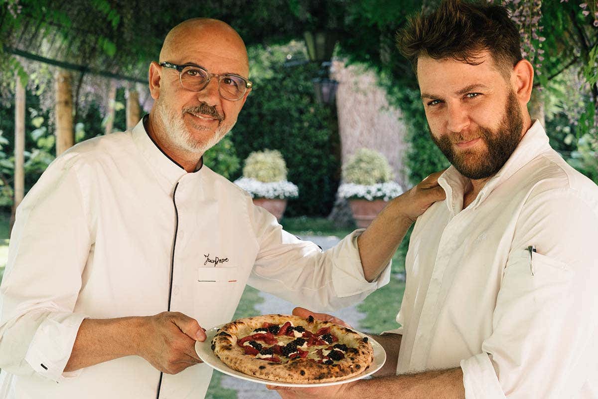 Per questo progetto che li vede lavorare fianco a fianco per la prima volta, Riccardo Canella e Franco Pepe, hanno deciso “in tandem” di firmare un menu di otto pizze d’autore, tre ideate da Canella e altre cinque proposte da Pepe. Due traiettorie che chiudono il cerchio incontrandosi nella creazione esclusiva di una nuovissima Pizza Cipriani, come tributo alla tradizione di un classico della gastronomia con il Carpaccio di manzo con salsa Cipriani, mozzarella di bufala, olio al pepe rosa e caviale come ingredienti protagonisti.