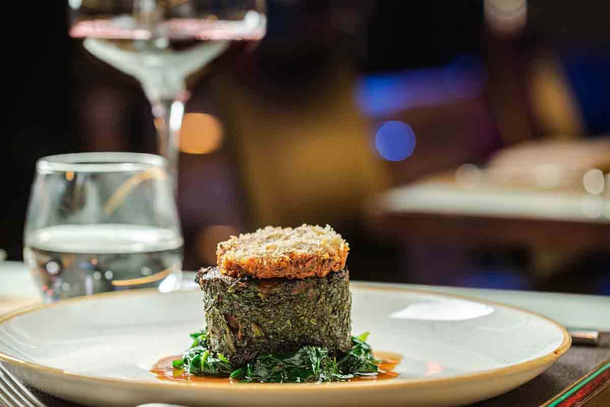 Il filetto che propongo è uno di quei piatti con l’idea di realizzazione di un percorso che, per chi conosce le cucine del mondo, ti fa fare anche un viaggio sensoriale, come hai capito subito tu con il filetto che accompagno con una Crab Imperial e una salsa olandese. La marinatura è tipica delle zone del Sud America, in particolare del Brasile, con la presenza di aglio e di liquirizia che hanno delle note acido-dolciastre che con il granchio e la salsa olandese vanno a bilanciare il gusto e rendono il piatto molto completo e complesso, ma assoluto.