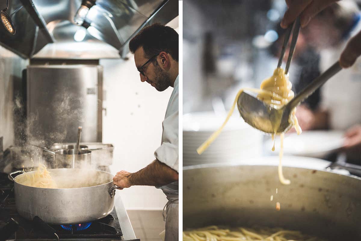 Linguine di Gragnano aglio, olio e peperoncino alla crema di Grana Padano Dop 18 mesi e zenzero