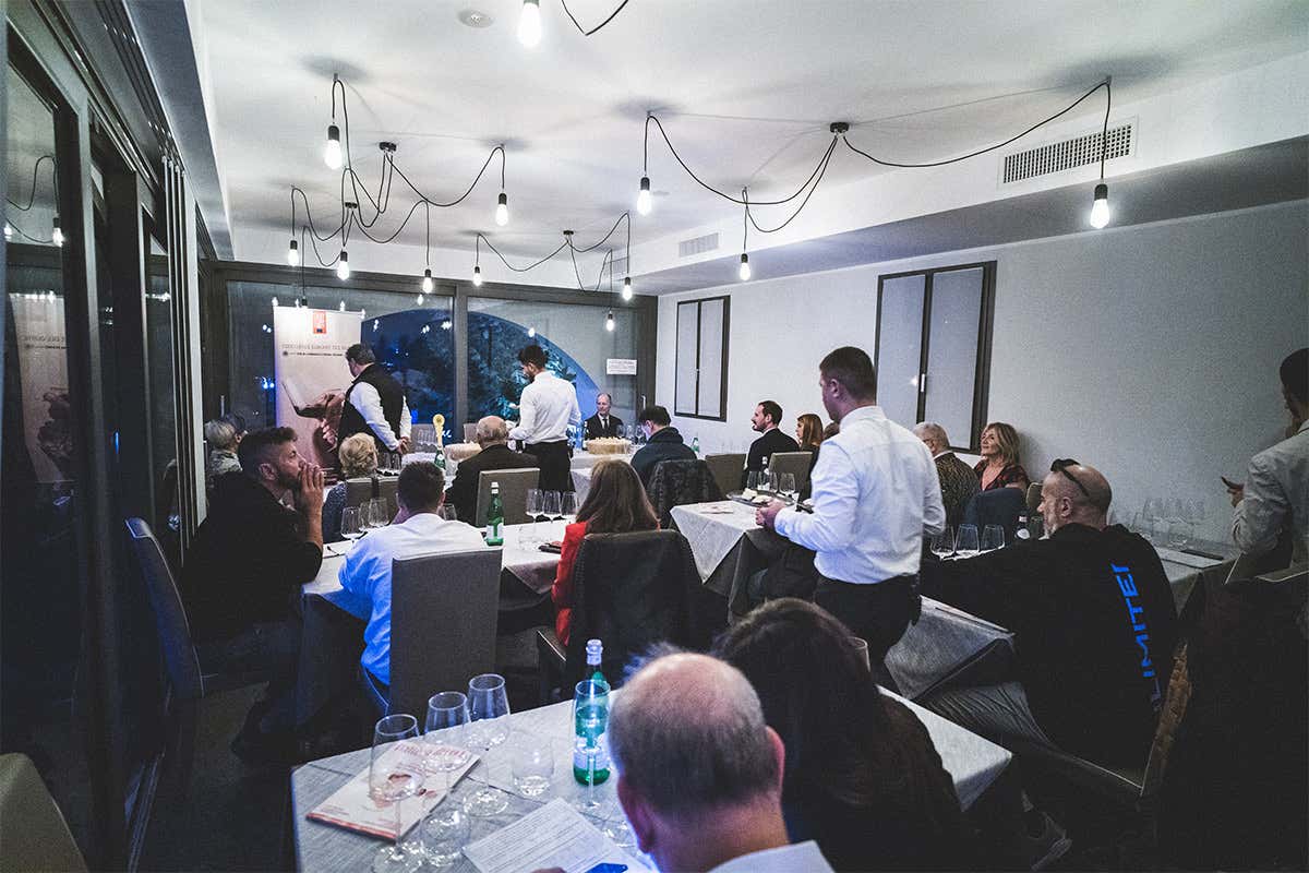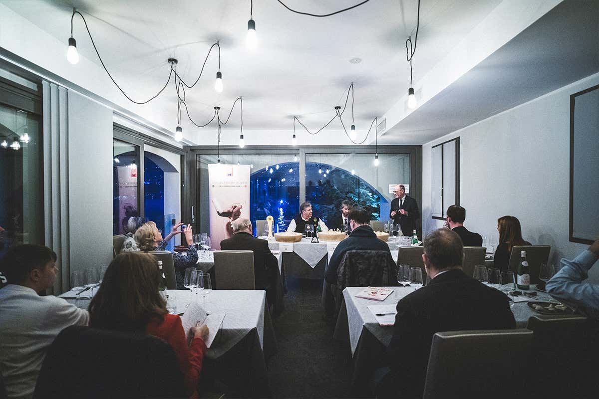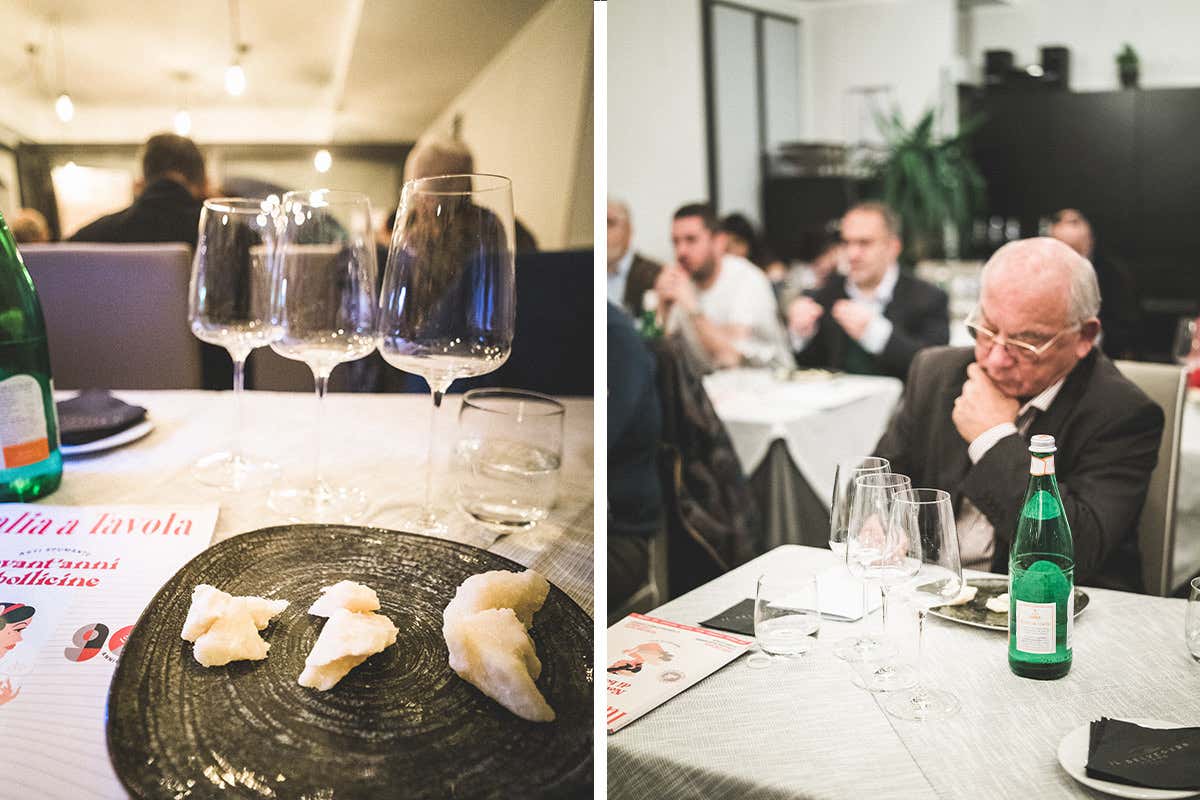 Come detto, la cena è stata preceduta dalla masterclass moderata da Gabriele Ancona, vicedirettore di Italia a Tavola e guidata da Federico Bovarini (Ais) e da Cornelio Marini (Onaf), in cui addetti ai lavori, giornalisti e gourmand hanno potuto degustare le diverse stagionature di Grana Padano Dop e giocare con gli abbinamenti dei vini proposti poi in abbinamento al menu da hoc.