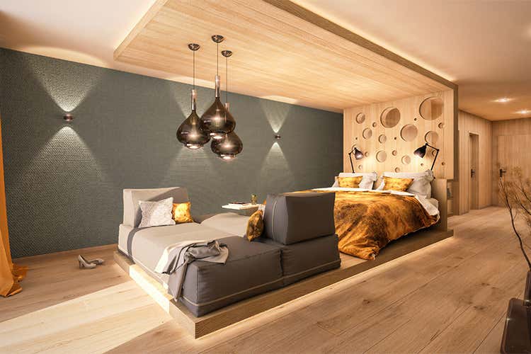 Chi soggiorna al Wellnessresort può scegliere poi tra una vasta tipologia di sistemazioni, tra cui le nuove camere e suite del Linderhof, caratterizzate da stile moderno, design contemporaneo e materiali naturali. Si va dalla camera matrimoniale “Die Kleine Alm” con dettagli color verde alle due junior suite “Bergfeuer Deluxe” e “Mountain Living”, dagli accessori moderni e ricercati, color arancio la prima, oro la seconda. Tutte arredate con legno di pino cembro, loden e lino, pavimento in legno naturale, letto Box-Spring con materasso termoregolatore, cielo stellato, angolo soggiorno e balcone, alcune anche con caminetto.