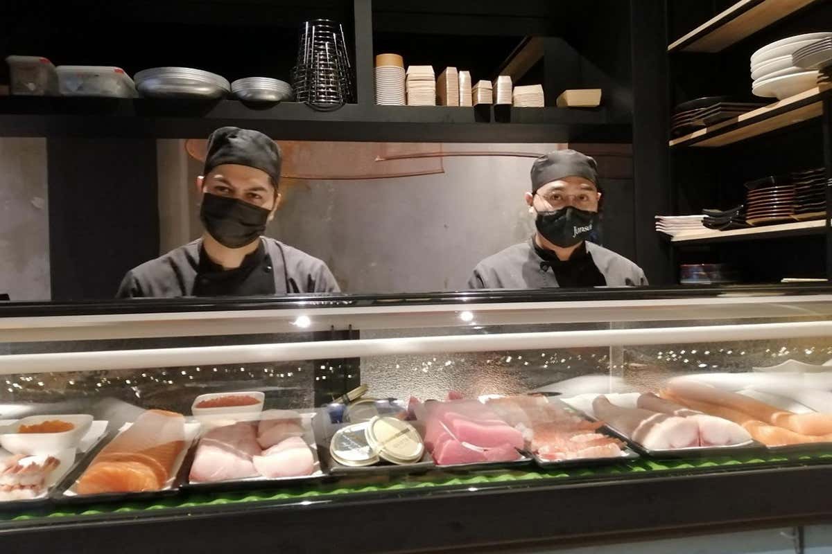 Bancone a vista sui sushichef
