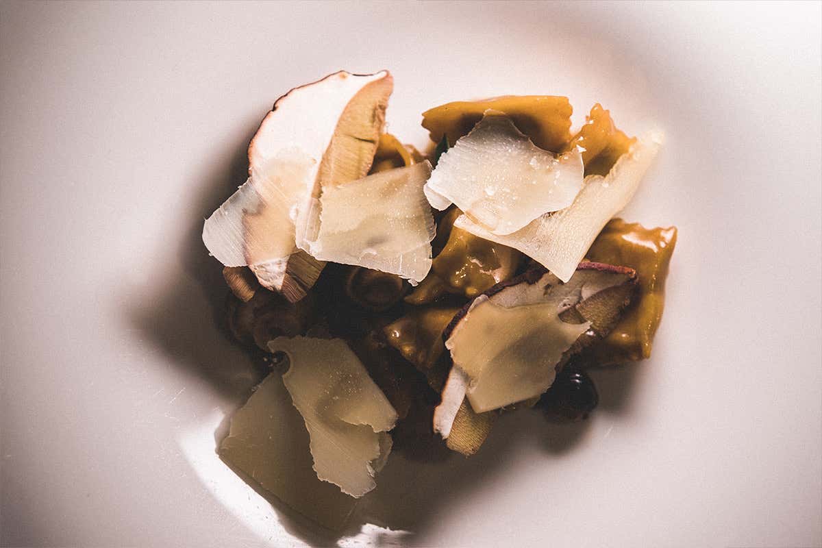 Il profumo del sottobosco | Raviolo del plin con funghi porcini e scaglie di Grana Padano Dop 18 mesi