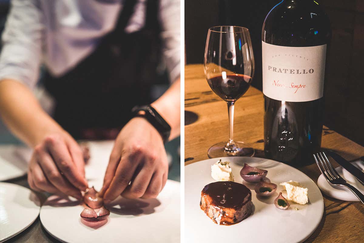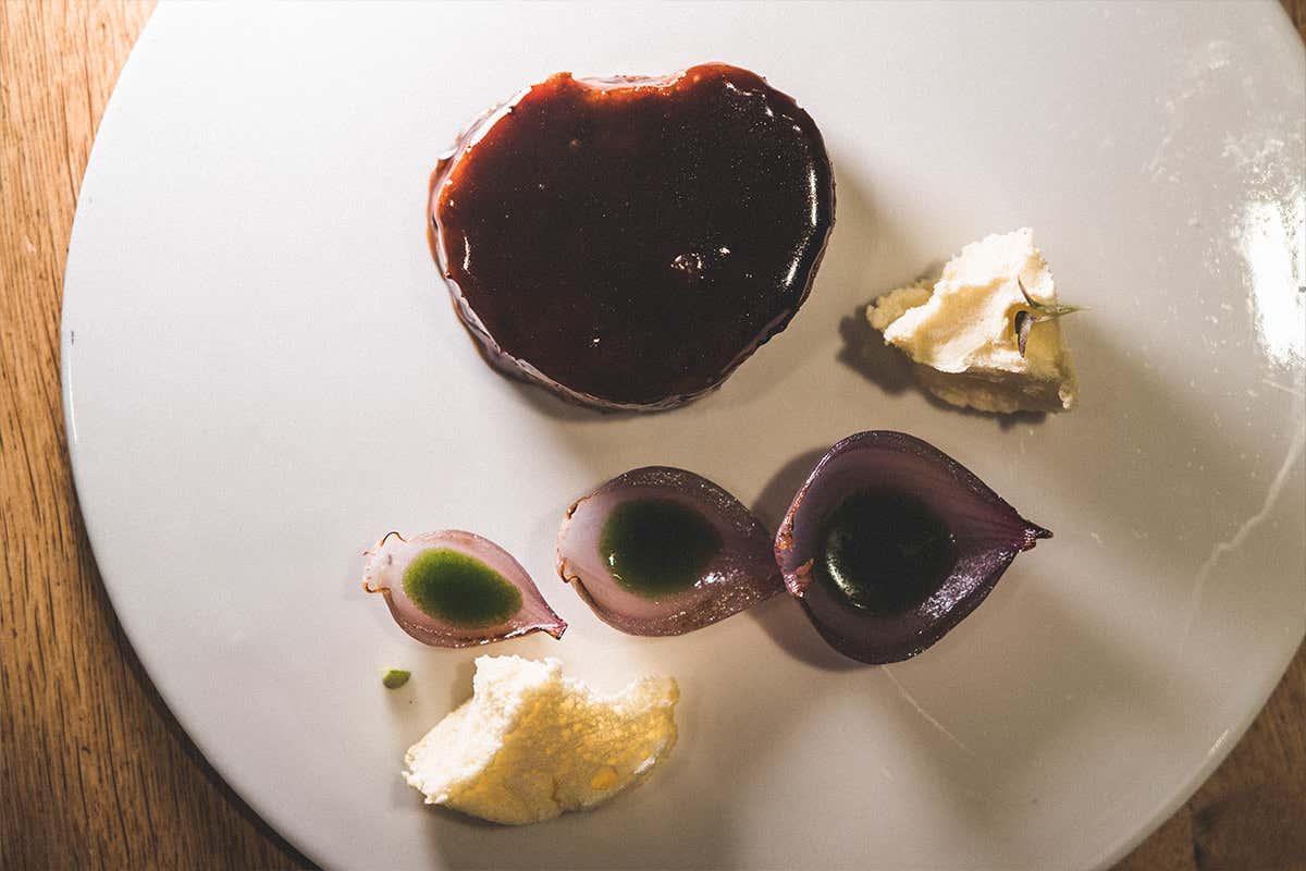 Il secondo, “Timido con carattere | Royale di agnello cotto a bassa temperatura con pan di spagna al Grana Padano Dop oltre 20 mesi, cipolle e cicoria”, ottimo la cottura e ben bilanciato. In contrappunto con il “Nero Per Sempre” Garda Rosso Doc 2019 - Azienda Agricola Pratello.