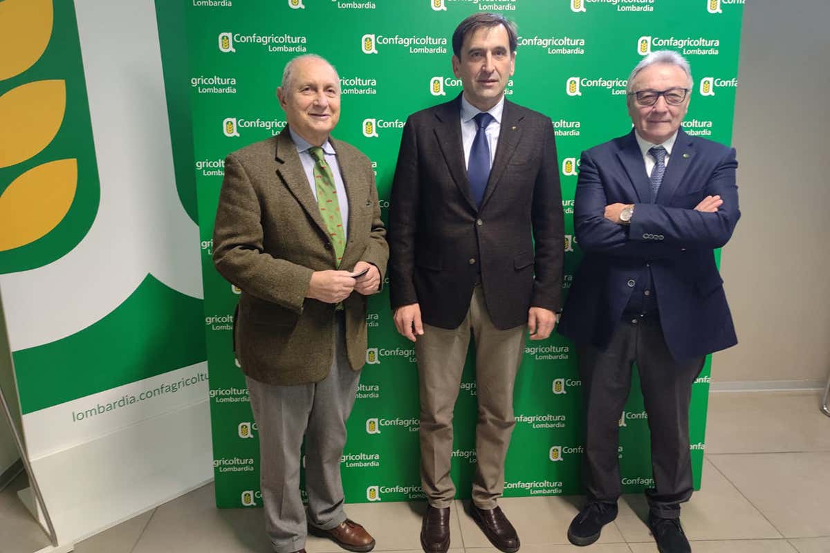 Da sinistra Giuseppe Cavagna di Gualdana, Stefano Zuliani e Riccardo Crotti Confagricoltura Lombardia, Stefano Zuliani nuovo direttore