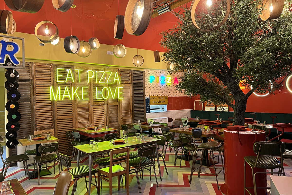 Fra i punti di forza di Fra Diavolo, le tre esclusive tipologie di impasto proposte ai propri clienti: classico, multicereali e al carbone. La fusione tra lo stile vintage e i materiali di recupero proposti dalle location, infine, danno vita ad un arredamento unico, che rafforza ancora di più l’esperienza unica di Fra Diavolo.