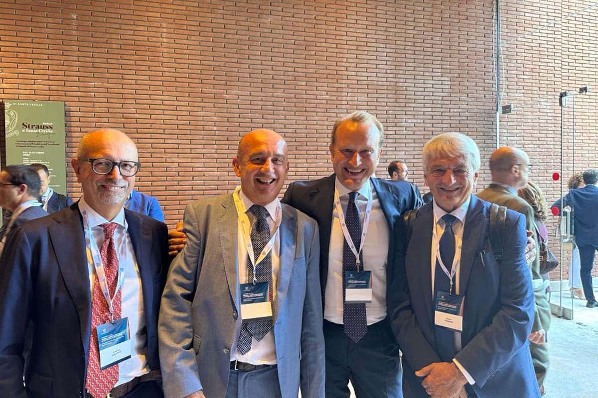 da sinistra a destra: Dr. Andrea Valente, Dr. Serafino Cremonini, Dr. Alberto Marenghi (Vicepresidente Confindustria per l’Organizzazione, lo Sviluppo e il Marketing) e il Dr. Silvio Ferrari