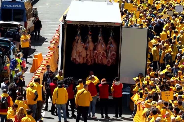 La mobilitazione si è concentrata su un punto preciso: la richiesta di superare il principio dell’“ultima trasformazione sostanziale”, la norma europea che consente a un prodotto alimentare trasformato in Italia di essere commercializzato come italiano anche quando le materie prime arrivano dall’estero. Secondo Coldiretti, questo meccanismo sottrae valore alla filiera agricola nazionale e penalizza i produttori italiani. Tra i prodotti più presenti nei camion fermati al confine ci sono le cosce di maiale fresche, arrivate soprattutto da Germania, Olanda, Danimarca e Francia. Una volta entrate in Italia, vengono destinate alla stagionatura e successivamente commercializzate sui mercati esteri o nazionali.