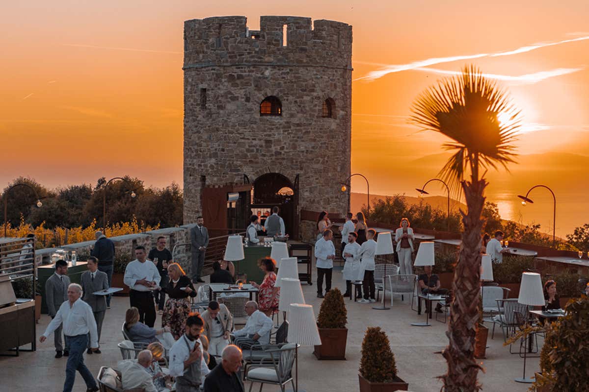La serata prenderà il via al calar del sole con un aperitivo presso il Rivellino Sunset, una terrazza con vista a 360 gradi sul golfo del Cilento e sulla Costiera Amalfitana. Questo momento di accoglienza offrirà ai partecipanti la possibilità di godere di un panorama unico mentre si prepara all'esperienza culinaria. La cena si svolgerà al Bistrot dei Sanseverino, all'interno del Castello, con un menù articolato in quattro portate. A conclusione, il dessert sarà servito nella Scacchiera del Castello, una location suggestiva che aggiunge un tocco di eleganza e tradizione all'evento.