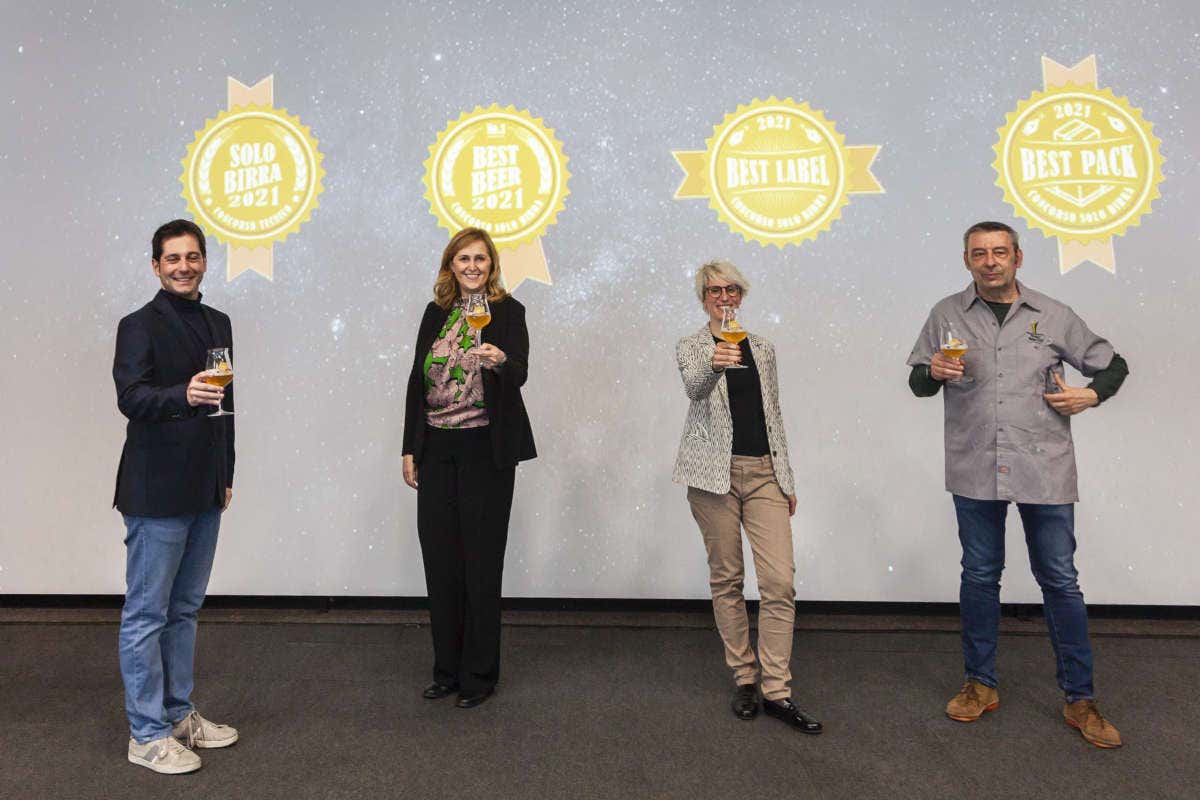 Lorenzo Dardano, Alessandra Albarelli, Giovanna Voltolini e Lorenzo Dabove aka Kuaska alla premiazione di Solobirra 2021 Sono aperte le iscrizioni ai contest di Solobirra 2022!