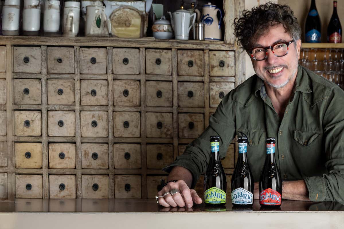 Il fondatore di Baladin Teo Musso ocn le tre nuove birre Botanic