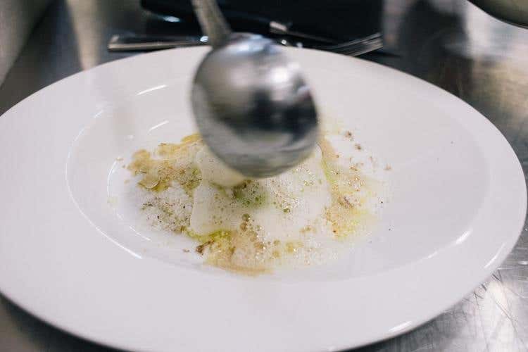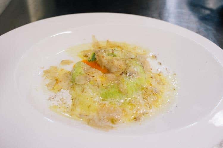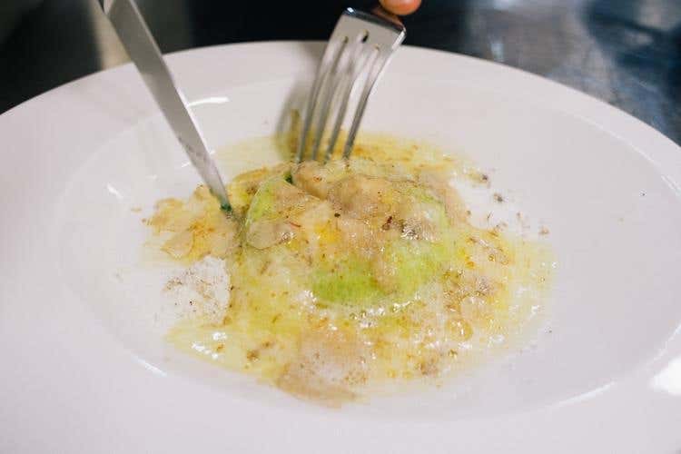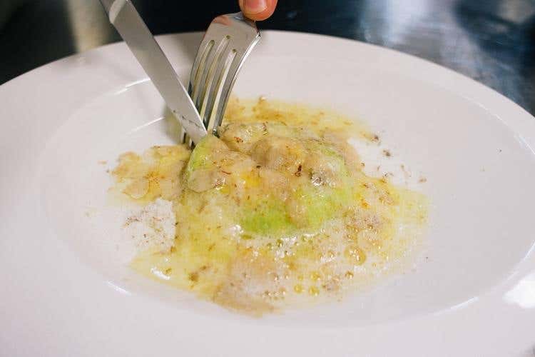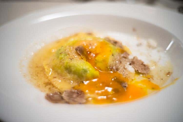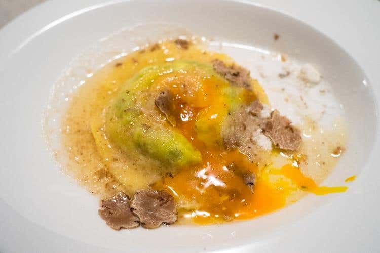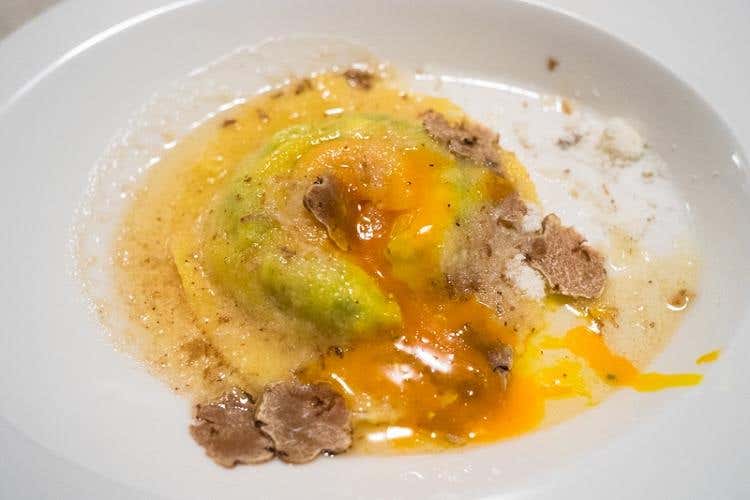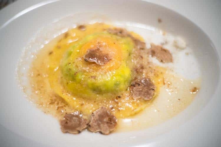 Uovo in raviolo “San Domenico”® con burro di malga, parmigiano dolce e tartufo bianco