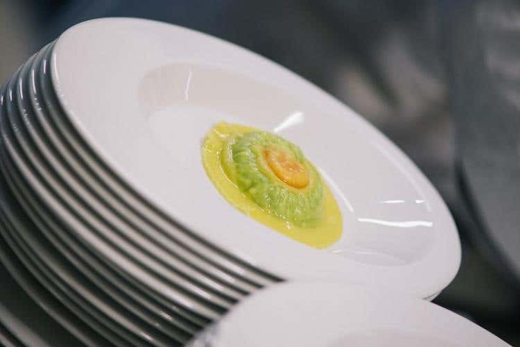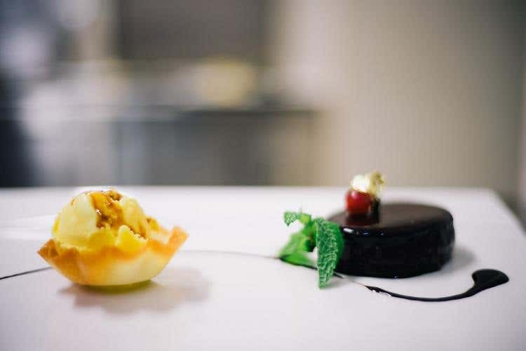 In tavola è stato servito un meno di eccellenza composto da: Millefoglie di fagiano e fegato d'oca con purea di mele golden, aceto balsamico e gelatina la porto; Trancio di rombo arrostito polenta morbida al formaggio di Fossa, vongole veraci e olive taggiasche; Uovo in raviolo “San Domenico”® con burro di malga, parmigiano dolce e tartufo bianco; Controfiletto di vitello con crema di latte alla vodka e guanciale affumicato; Torta fiorentina “Nino Bergese” in salsa profiterole con gelato di crema alla scorza di limone. In accompagnamento una prestigiosa selezione di vini: Champagne Charles Heidsieck Brut Rèserve, Magnum Costaripa Brut Rosé, Millepassi Bolgheri 2012 Doc Donna Olimpia 1898, Moscato d'Asti Docg.