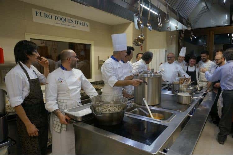 A Villa Lario, sede e vetrina di Euro Toques International durante Expo, il “padrone di casa” e presidente di Euro-Toques Italia Enrico Derflingher, ha condiviso i comandi delle cucine con tre amici e professionisti d'eccellenza: Filippo La Mantia, Giancarlo Morelli e Claudio Sadler. Il risultato è stata una cena all'insegna dell'esclusività e della raffinatezza. Ciascuno dei quattro chef, tra i massimi rappresentati della cucina italiana, ha contribuito con la propria tecnica mista a creatività, alla creazione di un menu inedito, fatto di sapori ricercati e in grado di riassumere la storia di ciascuno di loro.
