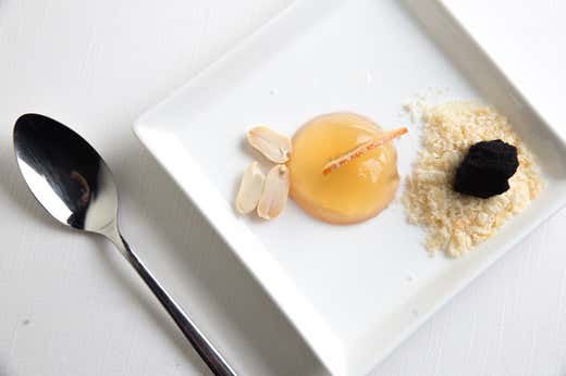 Al termine della conferenza stampa una colazione con finger food rappresentativi della filosofia degli chef protagonisti. Alberto Basso ha stuzzicato con Il Bio Spritz, gli Ossi de Mas’cio light version e l’Autunno come dessert; Davide Botta ha presentato l’Uovo di quaglia affumicato con spuma di taleggio, i Tortelli ripieni di baccalà, porro e fagioli di Spello e la Liquirizia nel bicchiere; Leandro Luppi, infine, ha stupito con la Trota, cren cioccolato bianco e uova fumé, il Lavarello alla puttanesca e le Verdure candite a freddo, terra di cacao, prezzemolo e cioccolato bianco.