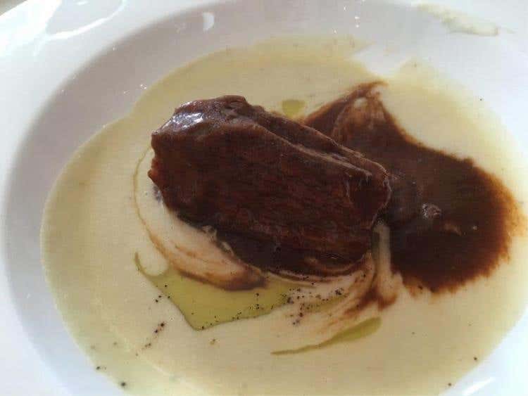 Il pranzo preparato dai Cerea è iniziato con un doppio antipasto: Crema di patate con guanciale di vitello e Baccalà alla ghiotta con polenta, accompagnati dal Pinot Nero “Pernice Rossa” Tenuta Caseo. Primo piatto, il Risotto con funghi porcini e cappella alla genovese abbinato al Rosso Veronese “Arele” 2013 Tommasi. Come secondo, la Costoletta di vitello alle spezie con grani di senape, purea di carote e patata fondente, servita insieme all’Amarone della Valpolicella classico 2012 Tommasi. Infine tris di dessert: Montebianco, Panettone artigianale e Torrone morbido con mandorle e pistacchi, accompagnati dal Franciacorta Brut Rosé Bèlon du Bèlon.
