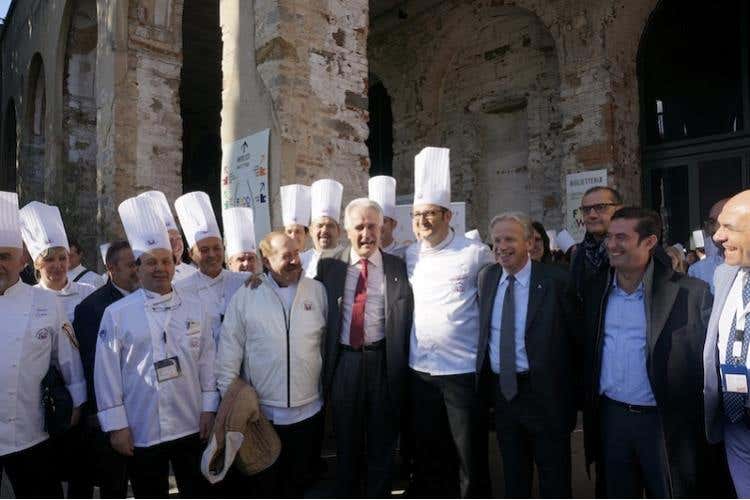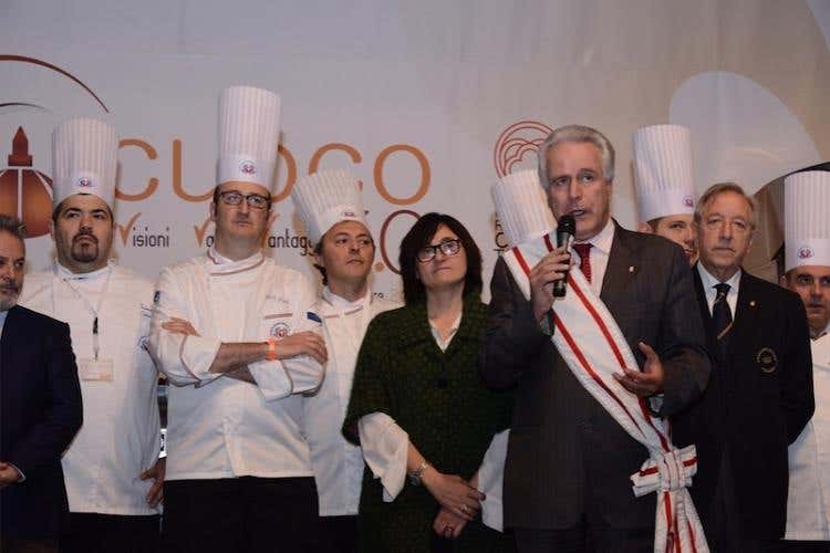«Un grande appuntamento che accompagna il 28º congresso dei cuochi - spiega Rocco Pozzulo (nella foto in alto il primo da destra), presidente Federazione italiana cuochi - un evento che non ha precedenti e che per la prima volta ha visto aprire le porte al pubblico accorso già in massa per scoprire le grandi eccellenze italiane e anche la cucina di alcuni grandi cuochi che sono venuti a Firenze per cucinare e raccontare la professione». Al taglio del nastro, tra gli altri, hanno preso parte l’Assessore all’agricoltura della Regione Toscana, Marco Remaschi, il presidente del Consiglio Regionale e la Vicepresidente, Eugenio Giani e Lucia De Robertis.