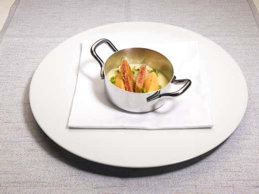 Il corretto dimensionamento delle forme, dei materiali e degli spessori, oltre alle più raffinate finiture, rendono le pentole della Collezione B.A. 1932 oggetti unici in cui la preparazione è servita nello strumento di cottura, in porzione singola. Nate in puro alluminio alimentare, sono poi state create con spessore professionale di 3 mm, nello speciale antiaderente colore bianco ceramico. Rigorosamente con manici di ottone.