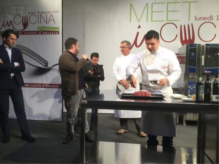 Per il secondo anno “Meet in Cucina” si conferma come opportunità di confronto tra i cuochi dell'Abruzzo. Ospite d'onore Massimo Bottura. Rivoluzione in cucina grazie a una nuova generazione di professionisti e alla Fic. 8 cuochi abruzzesi si sono alternati sul palco, affiancati da esperti e dal secondo chef al mondo