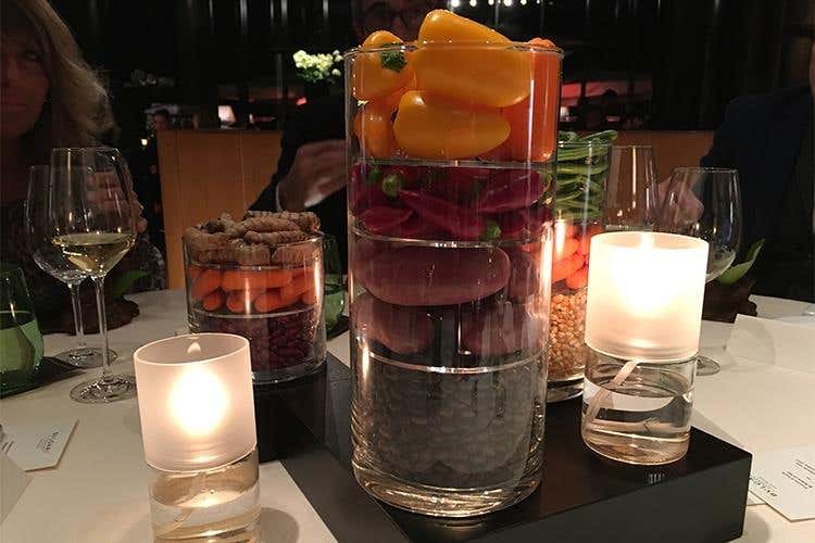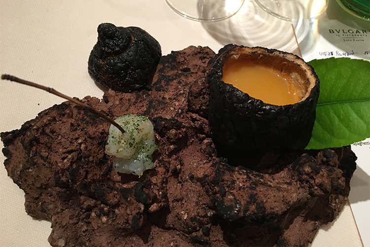 In questa prospettiva il menu preparato, con l'assistenza della cucina diretta da Roberto Di Pinto, è stato davvero un unicum capace di stupire e dare piacere pur nell'arditezza di alcune scelte. Nulla era lasciato al caso e ogni particolare all'insegna di una ricerca di armonia e di sfumature che poche volte capita di trovare. Se l'aperitivo era nella tipica formula del Bulgari Milano (